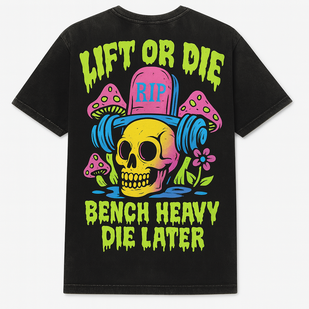 Lift or Die - Bench Heavy Die Later-Neon Grave Gains
