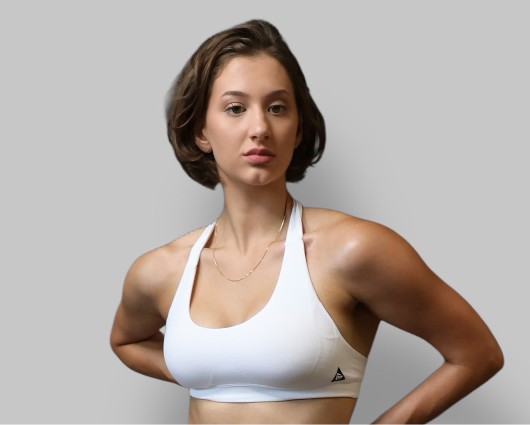 Designed with a flattering halter neckline, sculpted racerback, and secure under band, it delivers comfort and support for every workout. Finished with the signature BAYNE logo for a clean, modern look.